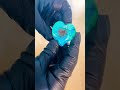 This paperweight style heart is made in a multistep process. First, a small heart is made from your cremains. That heart is embedded into your larger heart along with the lock of hair and then color is added.